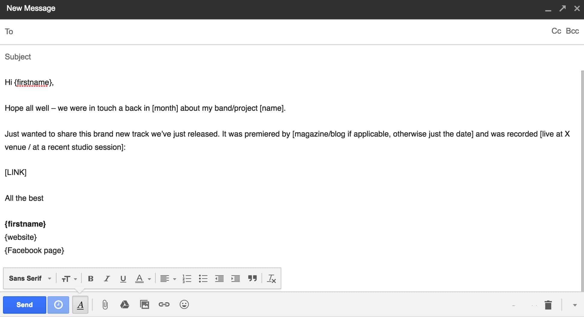 Once the track is out, send a link (ideally to a website or Facebook page) to any promoters whoโve shown interest in your project but havenโt booked it, along with a short mail along the lines of this: