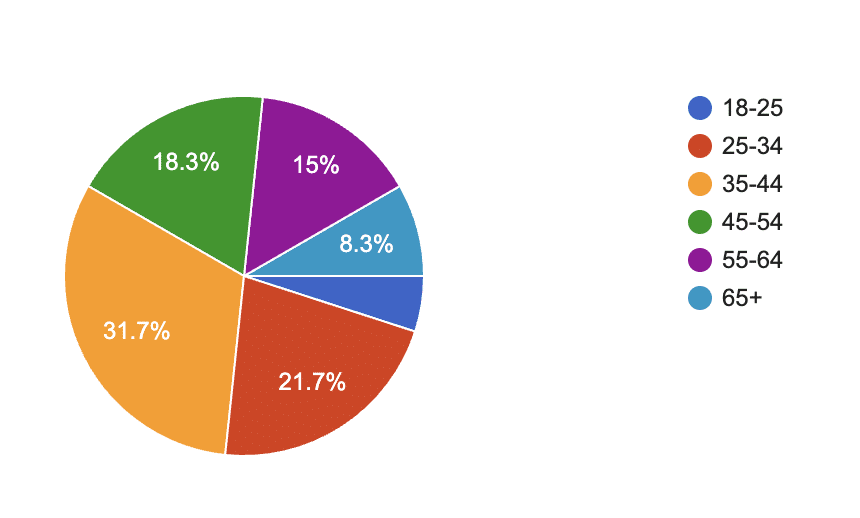 Whilst there’s a broad group of musicians, the 25-44 age range made up more than half the participants, with the two extremes (18-24 and 65+) making up the smallest groups.