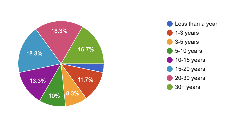 At the other end of the scale, 15% of people noted they’d been in the city for less than 3 years.