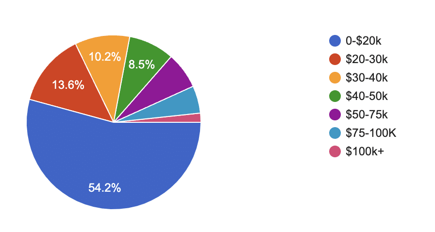 Perhaps logically, the results were gradually smaller for each subsequent income-bracket, until the top ($100k+) which was added by just one person.